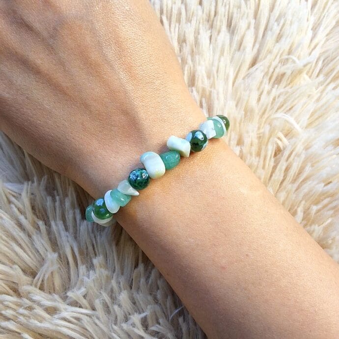 تألقي بلمسة مستوحاة من هدوء الطبيعة مع هذه الأسوارة اليدوية الفريدة، التي تجمع بين أحجار طبيعية مصقولة بألوان تتدرج من الأخضر الداكن إلى الأخضر الفاتح مع تداخلات اللون الأبيض النقي. قطعة صُممت لتضفي على معصمك مظهراً طبيعياً مفعماً بالحيوية والأناقة، مما يجعلها الرفيق المثالي لكل إطلالة تبحث عن التميز والهدوء. مقدمة لكم من (Maram Bracelet)🌷