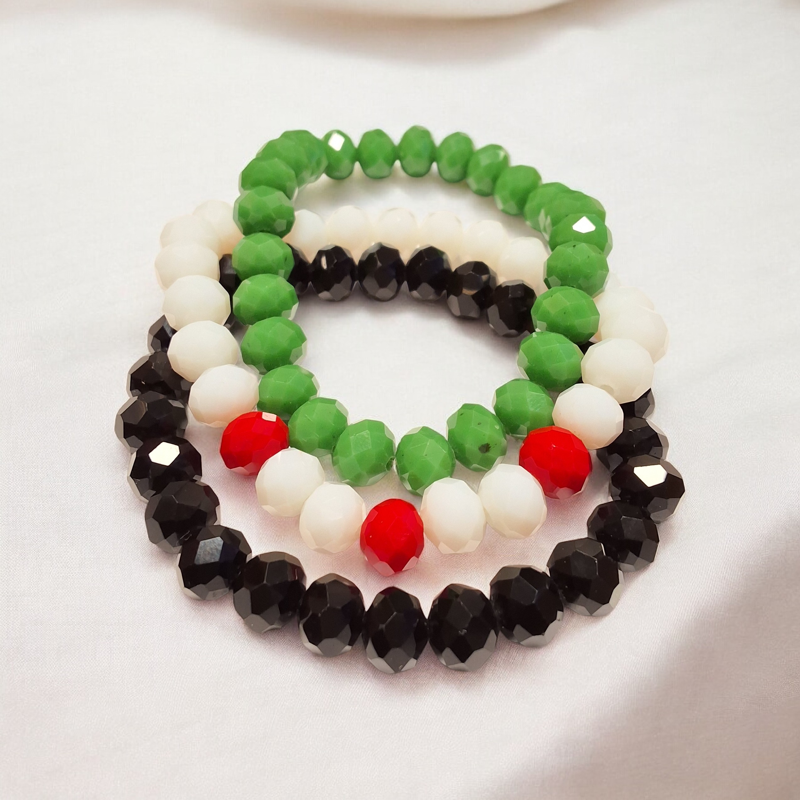 • خرز ملون عالي الجودة (أبيض – أسود – أخضر – أحمر)