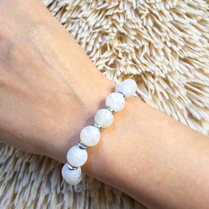 أسوارة حجر طبيعي أبيض بتنسيق أنيق وفواصل فضيةجديد