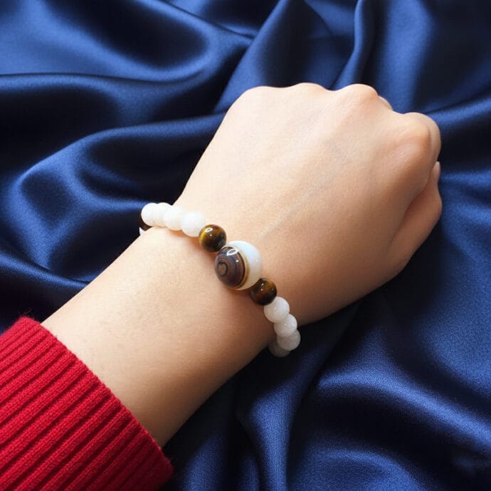 أسوارة خرز أحجار القمر البيضاء مع خرز عقيق عين النمرجديد