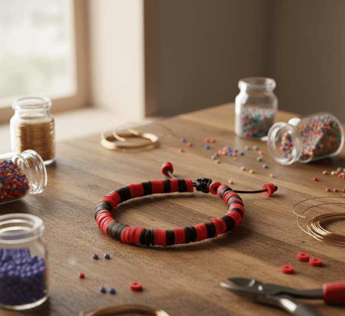 أسوارة خرز أحمر وأسود بتباين جريء يلفت الأنظارجديد