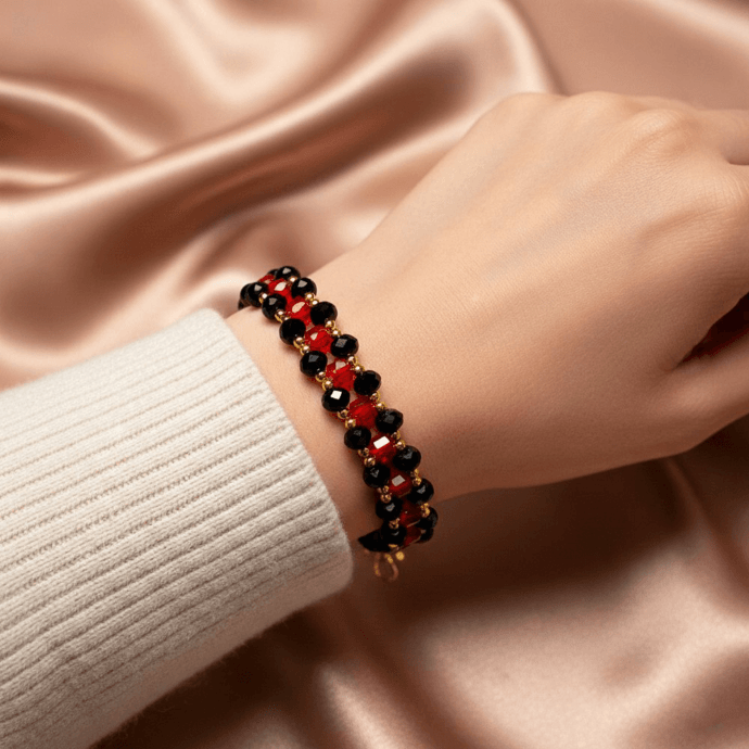 أسوارة خرز أحمر وأسود بتصميم يدوي أنيقجديد