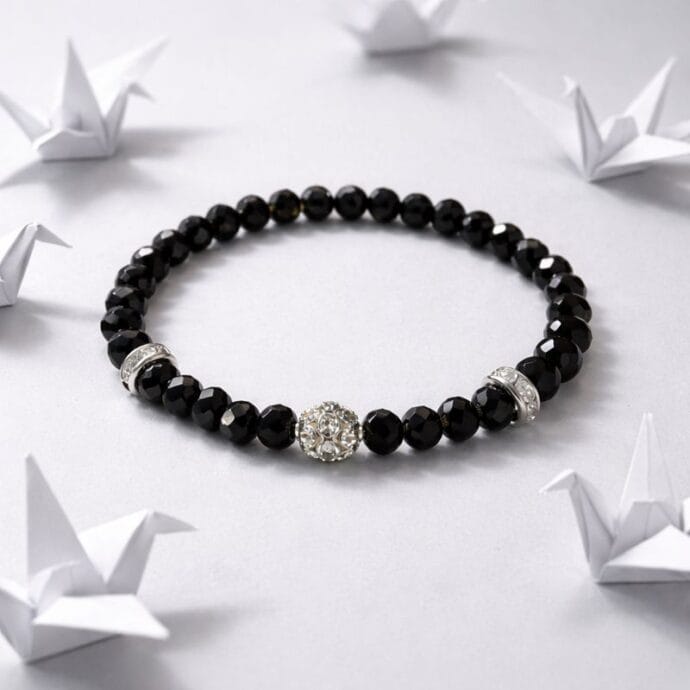 أسوارة بلمسة داكنة راقية، تعكس حضورًا هادئًا وتفاصيل متوازنة تناسب مختلف الإطلالات. مقدمة لكم من (Maram Bracelet) 🌹مشغولة باليد بعناية، مكوّنة من خرز أسود مصقول يعكس الضوء بهدوء ويمنح القطعة عمقًا وأناقة غير لافتة. يتوسط التصميم فاصل معدني فضي بنقشة ناعمة، تم اختياره ليكسر اللون الداكن ويضيف توازنًا بصريًا واضحًا.