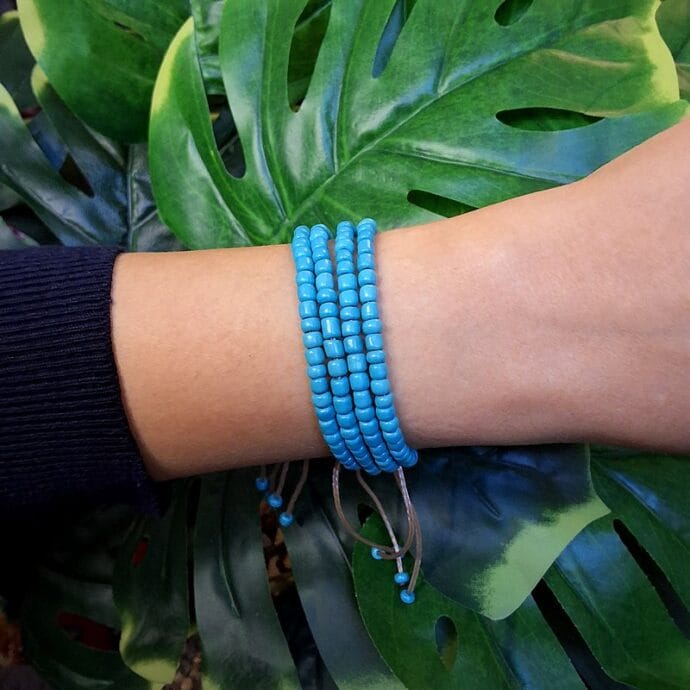 أسوارة خرز بأربع صفوف بلون فيروزي جذاب تضيف لمسة أنيقة ومميزة للمعصم. تصميمها المتعدد يمنحك إطلالة لافتة تجمع بين البساطة والجاذبية، مناسبة للاستخدام اليومي كما أنها خيار جميل كهدية أنيقة. مشغولة باليد بعناية لتمنحك قطعة فريدة. مقدمة لكم من (Maram Bracelet)🌷