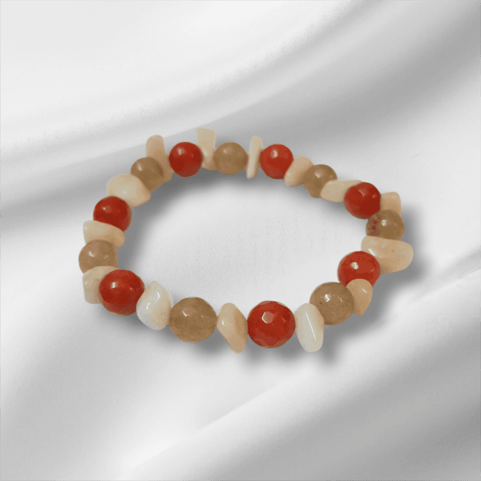 أسوارة بتصميم دافئ مستوحى من الألوان الترابية، تجمع بين خرز عقيق أحمر وتدرّجات عسلية شفافة تعكس لمعة ناعمة على المعصم. مقدمة لكم من (Maram Bracelet)🌹🌹قطعة متوازنة تناسب الإطلالات اليومية وتضيف لمسة دفء وأناقة بدون مبالغة.