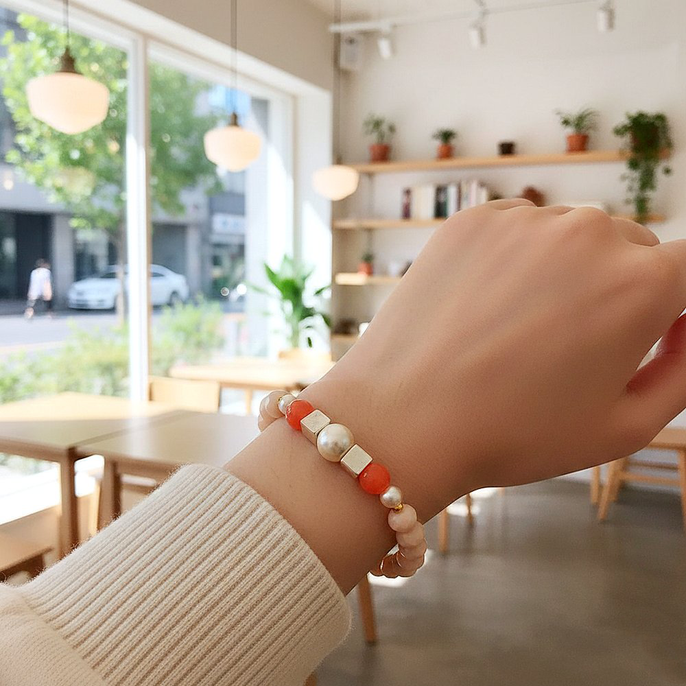 أسوارة مشغولة يدوياً بتصميم عصري يمزج بين بريق الخرز المضلع وحيوية حجر الكريستال البرتقالي المضلع الذي تتوسطه حبة لؤلؤ بيضاء تضفي لمسة من النقاء. مقدمة لكم من (Maram Bracelet)🌷 القطعة تعكس تناسقاً فريداً بين الألوان والخامات مما يجعلها خياراً رائعاً لتدللي بها معصمك أو تقدميها كهدية متميزة تفيض بالبهجة لتبقى ذكرى جميلة تدوم طويلاً.