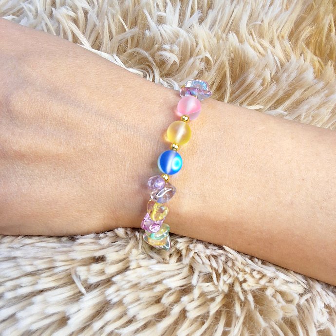 أسوارة من الأحجار الشفافة الملونة مزينة بخرزات مضيئة ملونةجديد