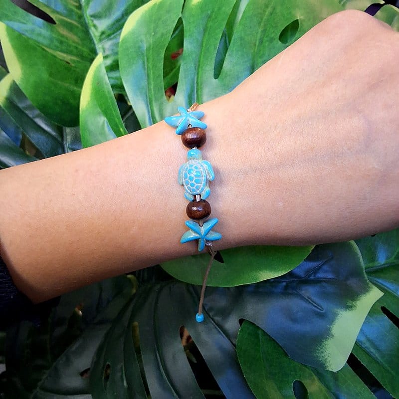 أسوارة خيط خرز بني مع سلحفاة ونجوم فيروزية لإطلالة صيفيةجديد