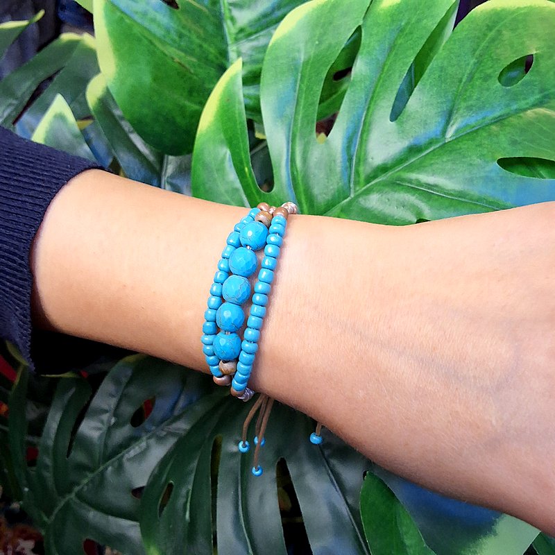 أسوارة خيط متعددة الطبقات مزينة بحجر فيروزي جذاب تضيف لمسة حيوية ومميزة لإطلالتك. تنسيق الطبقات مع درجات الفيروزي يمنح التصميم طابعًا عصريًا وأنيقًا يناسب الإطلالات اليومية ويجعلها خيارًا جميلًا كهدية مميزة. مشغولة باليد بعناية لتمنحك قطعة فريدة. مقدمة لكم من (Maram Bracelet)🌷