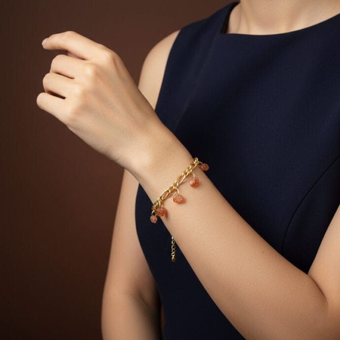 أسوارة ذهبية ناعمة بقلادات أحجار عقيق عسلي مكسرةجديد