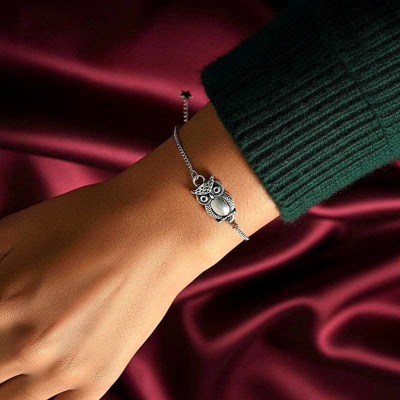 تألقي بنعومة الفضة مع أسوارة يدوية رقيقة تتوسطها قلادة بومة مفرغة بتفاصيل متقنة تضفي على معصمك لمسة أنثوية ساحرة تجعلها الهدية المثالية لكل الأوقات. مقدمة لكم من (Maram Bracelet)🌷