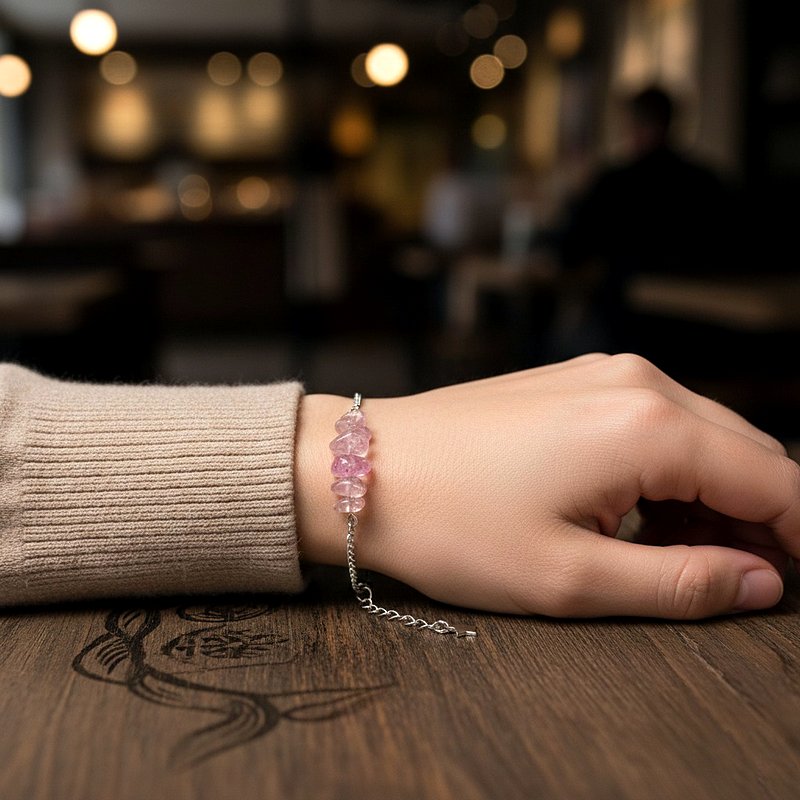 لمسة أنثوية حالمة تجمع بين سحر أحجار الكوارتز الوردي الطبيعية ونعومة السلسلة الفضية لتزين معصمك بقطعة يدوية فريدة تفيض بالرقة والجمال. مقدمة لكم من (Maram Bracelet)🌷