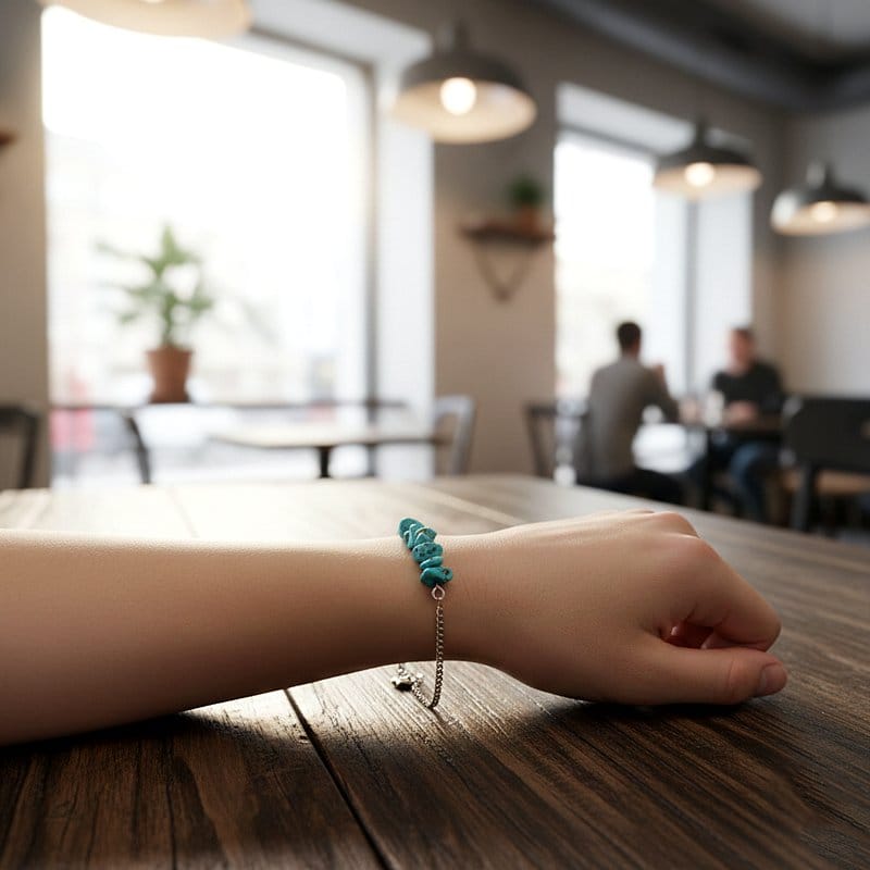 أسوارة سلسلة ناعمة فضية بأحجار الفيروز الطبيعية المكسرةجديد