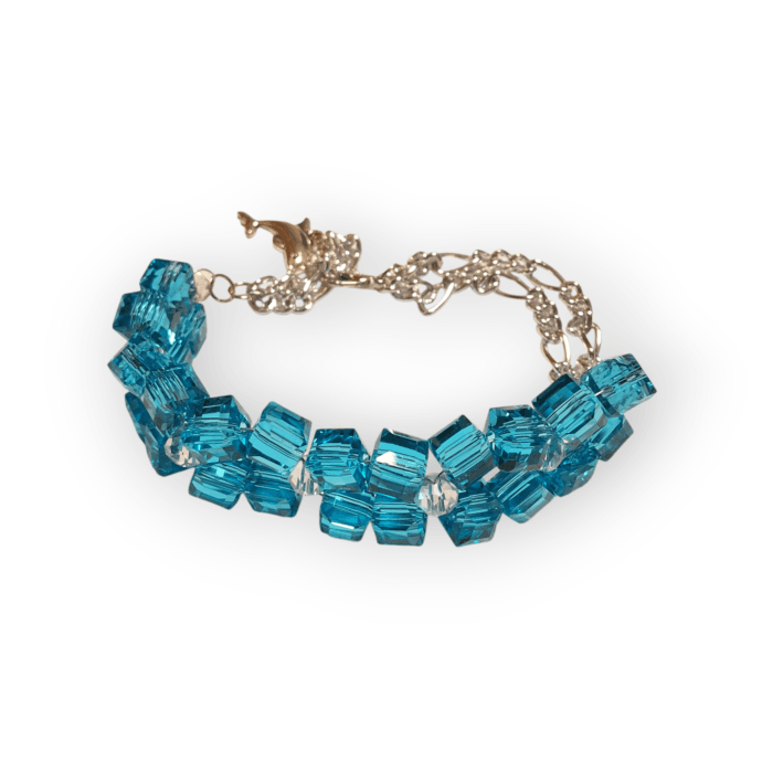أسوارة كريستال تركواز مضلع شفاف مع سلسلة وتعليقات فضيةجديد
