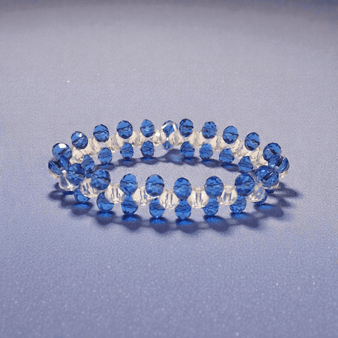 أسوارة أنيقة بتدرجات الأزرق الهادئ مع خرز شفاف يعكس الضوء بشكل ناعم وجذاب. مصنوعة من خرز كريستال مقصوص بعناية ليمنح لمعانًا واضحًا مع كل حركة، بتناسق جميل بين اللون الأزرق الملكي والشفاف البلوري. تصميمها مرن ومريح على المعصم، يناسب الإطلالات اليومية كما يضيف لمسة راقية عند تنسيقه مع الملابس المسائية. خيار مثالي لمحبات الألوان الهادئة والأناقة البسيطة.مقدمة لكم من (Maram Bracelet)🌹