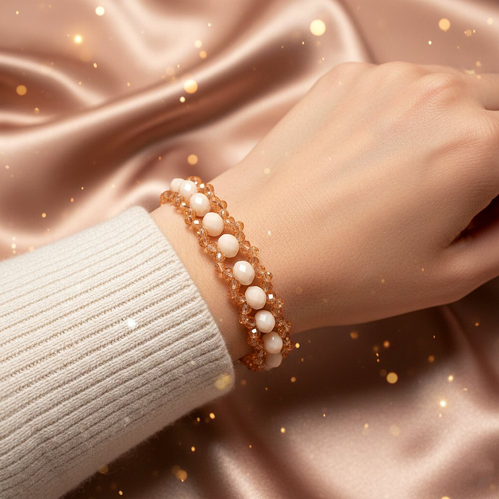 أسوارة مشغولة يدويًا تجمع بين نعومة اللؤلؤ وبريق الخرز الذهبي لتمنح المعصم حضورًا راقيًا ولافتًا. تصميم متوازن يعكس الأناقة دون مبالغة، مما يجعلها قطعة مثالية للإطلالات المرتبة والمناسبات وحتى للاستخدام اليومي بأسلوب فخم. مقدمة لكم من (Maram Bracelet)🌷