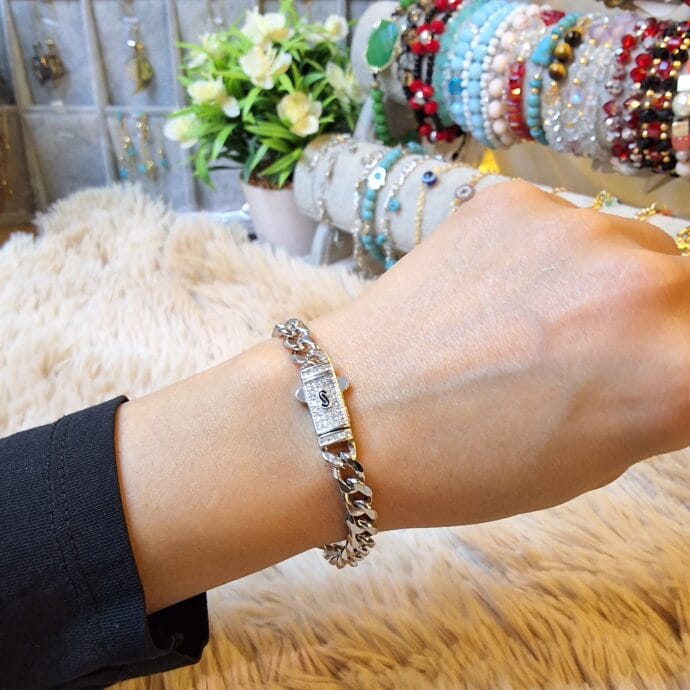 أسوارة موناكو باللون الفضي مرصعة بحجر الزيركون اللامع، لون ثابت ومكفولة بتصميم فاخر يضيف بريقًا راقيًا للمعصم ويناسب الإطلالات اليومية والمناسبات. مقدمة لكم من (Maram Bracelet)🌹