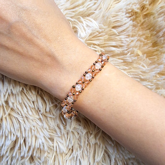 أسوارة يدوية أنيقة بنمط دوائر الكريستال والخرز البرونزي والعسليجديد