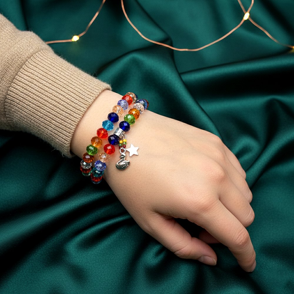 طقم أسوارتين بتنسيق لوني نابض بالحياة، يجمع بين الخرز الشفاف الملوّن وتعليقة فضية بشكل نجمة تضيف لمسة مميزة وناعمة. يمكن ارتداؤهما معًا لإطلالة جريئة مليئة بالحيوية أو كل واحدة على حدة لأسلوب أكثر بساطة. مقدمة لكم من (Maram Bracelet)🌷