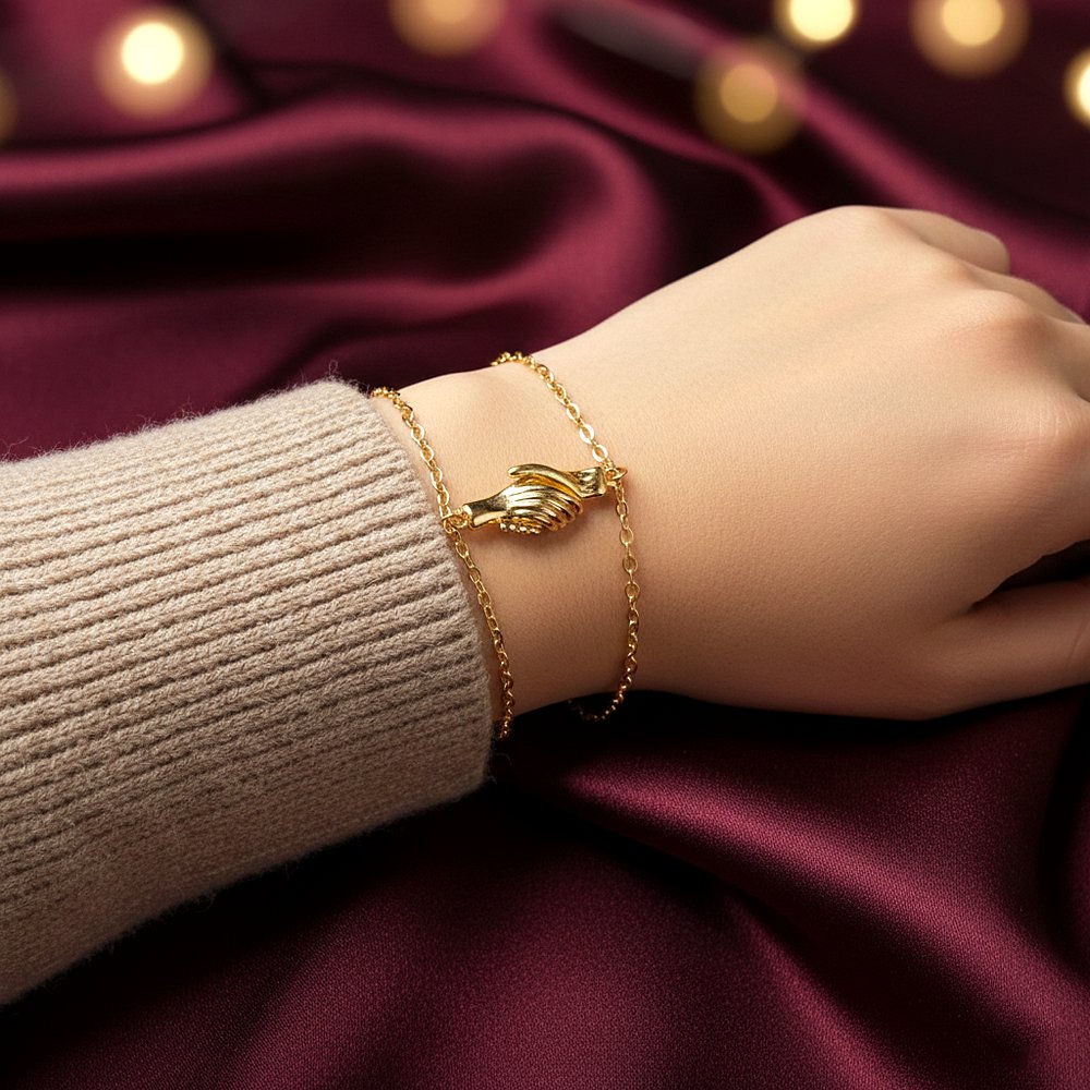 طقم أسوارتين كابلز باللون الذهبي يجمع بين البساطة والمعنى العاطفي في تصميم واحد. تفصيلة الأيدي المتشابكة تضيف بعدًا رمزيًا يعكس القرب والاهتمام، بينما يمنح اللون الذهبي إحساسًا بالفخامة والدفء يجعل الطقم مناسبًا لكِ ولمن تحبين. مقدمة لكم من (Maram Bracelet)🌷