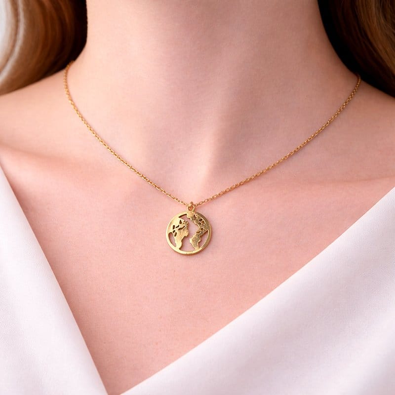 سنسال ذهبي مع تعليقة دائرية لخريطة العالم مميزجديد