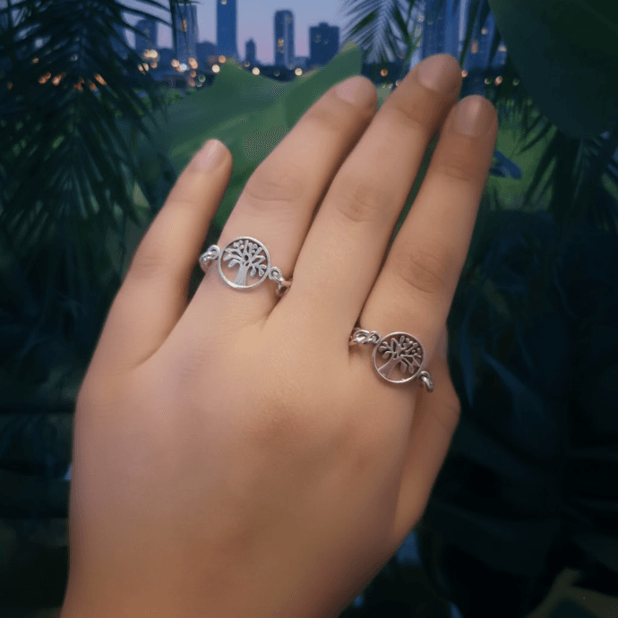 خاتمين بتصميم شجرة الحياة بلون فضيجديد