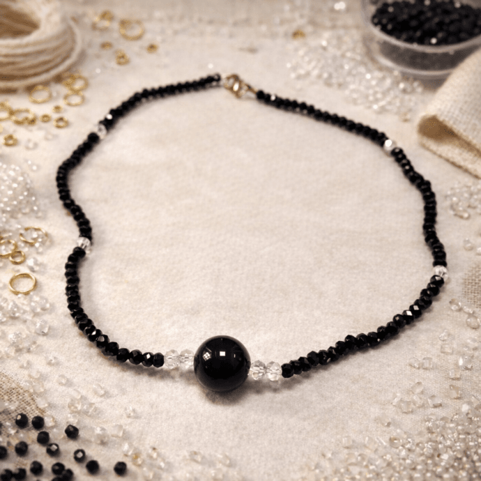 طوق خرز ناعم أسود مع حبة مركزية لامعة أنوثة لافتةجديد