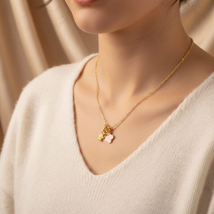 طوق سلسلة ذهبية ناعمة بقلادة زهرة البرسيم الوردي | Clover Flowerجديد