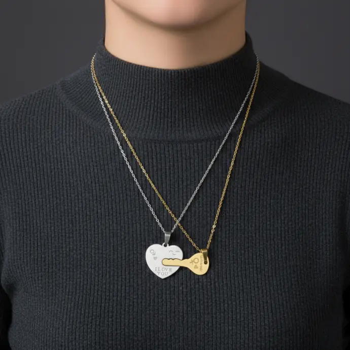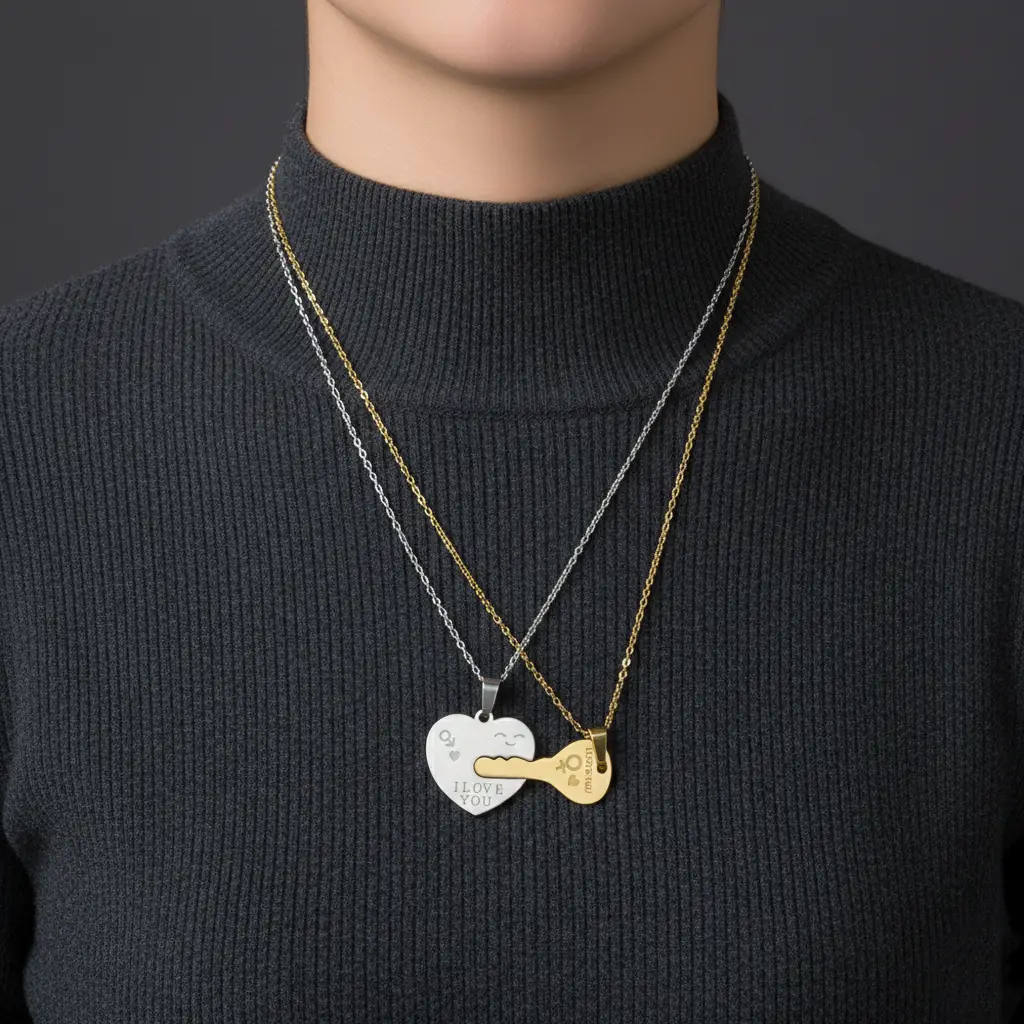 طوق مزدوج القفل والمفتاح بتصميم عصري يجمع بين الأناقة والرمزية، حيث تعبر التعليقتان عن الارتباط والثقة بأسلوب ناعم وجذاب. قطعة مميزة تضيف لمسة عاطفية راقية للإطلالة، وتناسب الارتداء اليومي أو كهدية تحمل معنى جميلًا لا يُنسى. مقدمة لكم من (Maram Bracelet)🌷